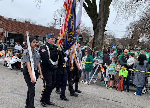 Elmhurst Police Explorers join members of the American Legion in the color guard during the St. Patrick's Day Parade. (David Giuliani/Patch)