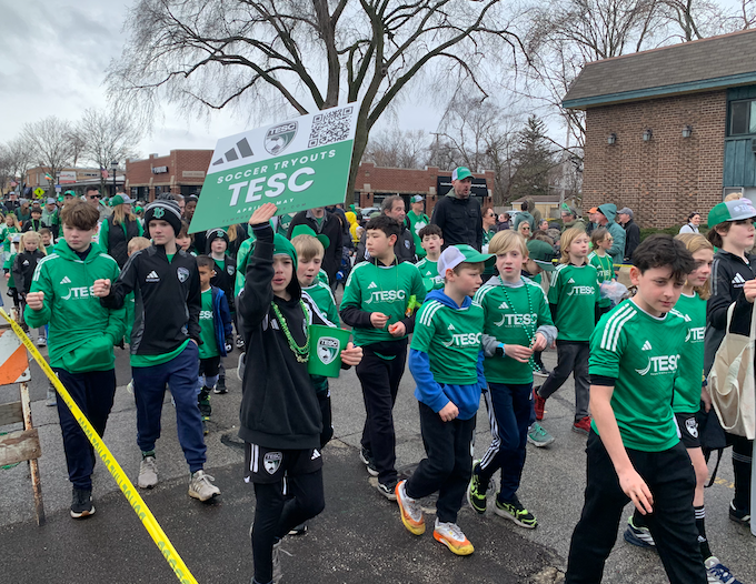 Members of Team Elmhurst Soccer Club advertise tryouts during the parade. (David Giuliani/Patch)