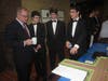 Photo 2: County Board Chairman Dan Cronin talks with York students and ECO Club members Spencer Bunch-Hotaling, Sam Jordan-Wood and Nick Soldano about their sustainable design.