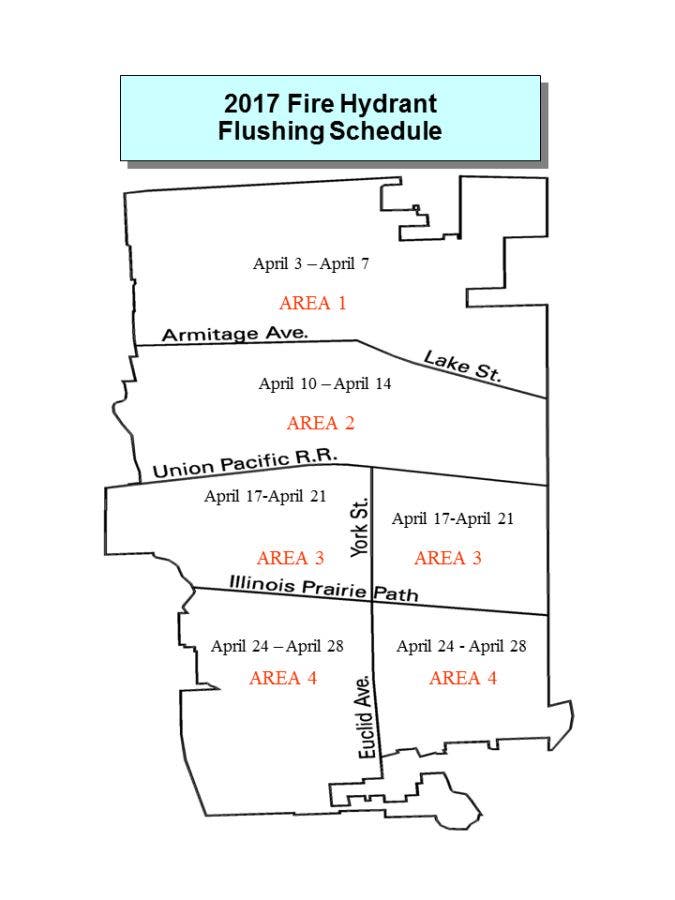 ELMHURST, IL - Elmhurst's annual hydrant flushing will take place from April 3 to April 29 between 7:30 a.m. and 3 p.m.