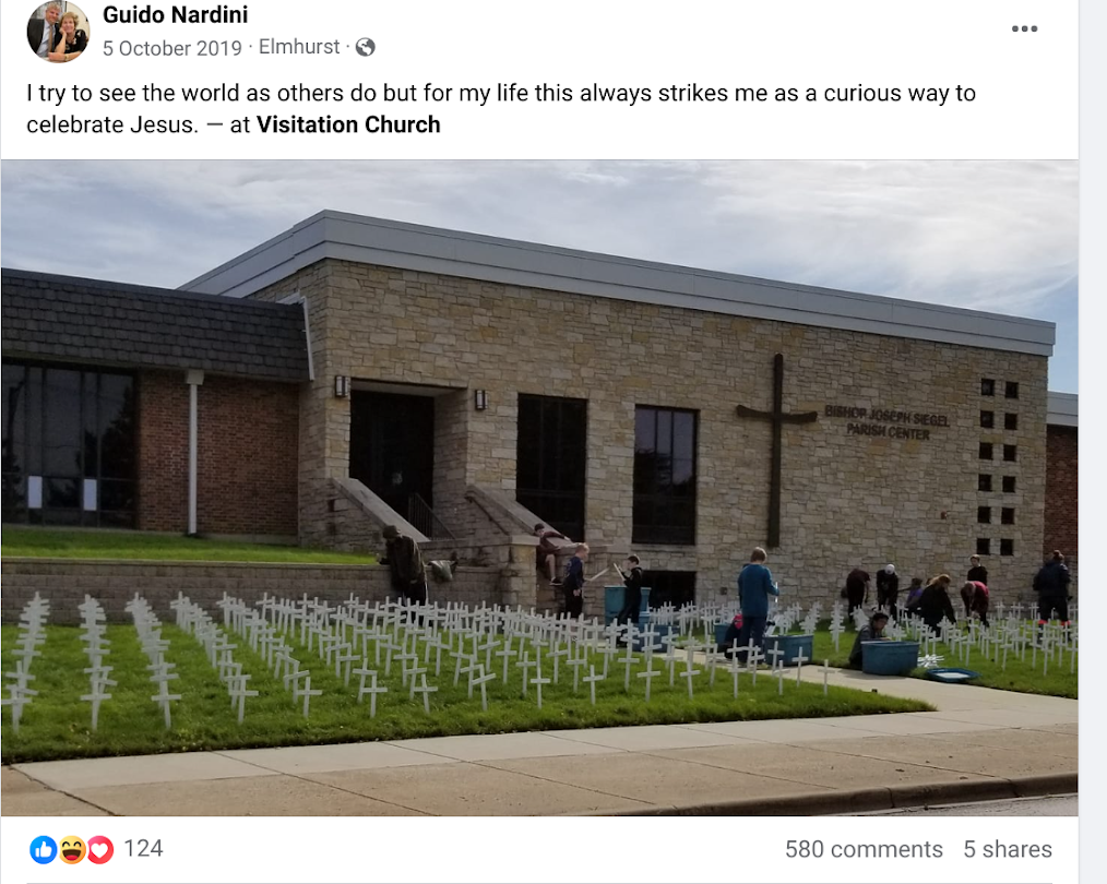 ELMHURST, IL – Elmhurst Alderman Guido Nardini has made his views known about a pro-life display of crosses at a local Catholic church – he doesn't like it.