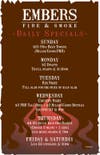Embers, 122 S. York Road, officially opened Tuesday, Sept. 25. Hours are 5 p.m. to 1 a.m. Sunday through Thursday, 5 p.m. to 2 a.m. Friday and Saturday.