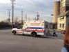 A prop ambulance on the set of “Chicago Fire” in Elmhurst