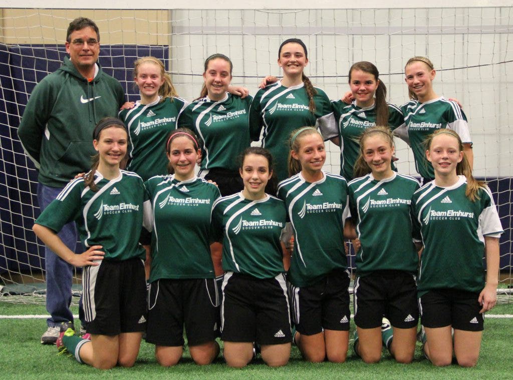 The Team Elmhurst U14 girls won the Glen Ellyn Park District Indoor Soccer Championship 6-0 over Club Synergy on Saturday, April 7. Both teams met previously in winter league play, resulting in a tie and a 2-1 win for Elmhurst. Elmhurst also finished the indoor season undefeated.