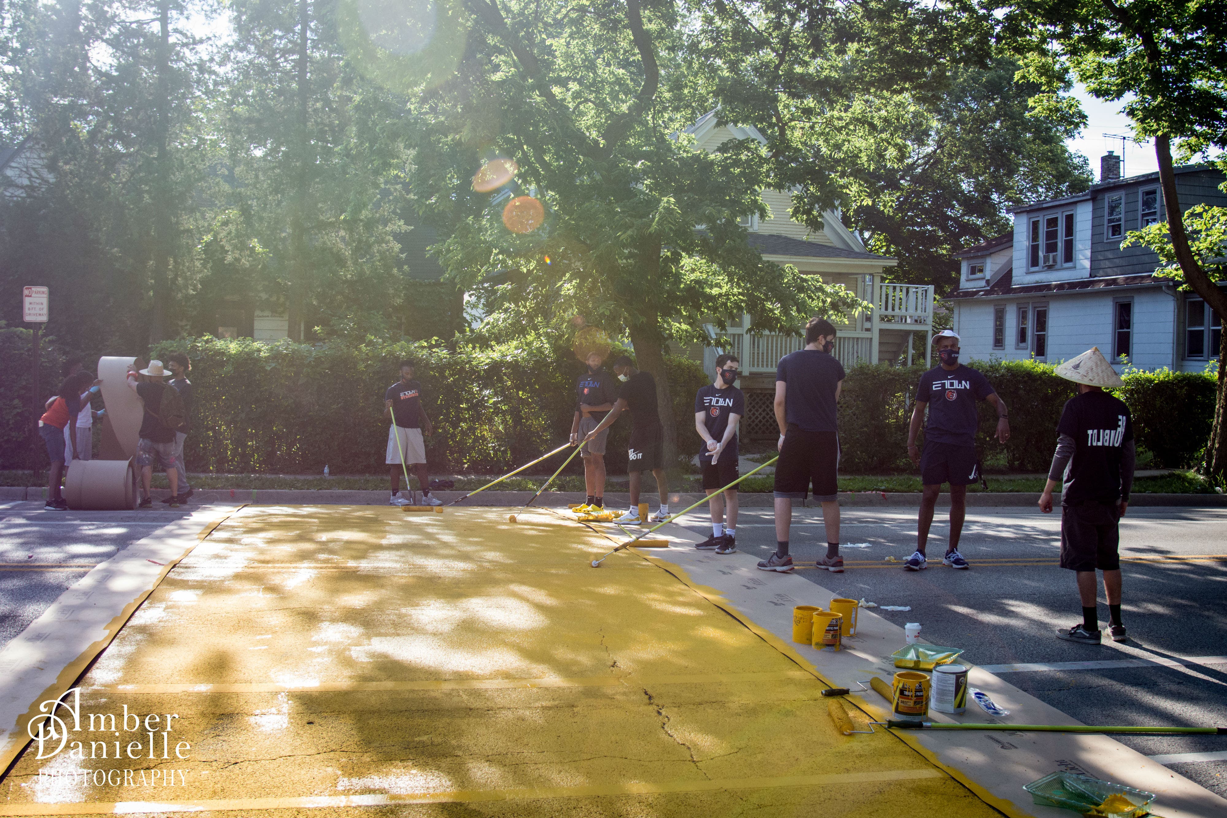 The three-block portion of Dodge Avenue between Church and Lake streets was the site of a mural painted on the road on July 3 in an effort led by players and coaches from the ETHS basketball team.
