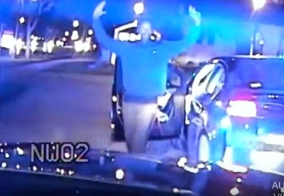 As Crosby steps out with his hands in the air, several officers begin yelling at him to get on the ground. Within about 10 seconds, they surround him and tackled him to the pavement. Officers can be seen striking Crosby repeatedly while on the ground. One reported he "utilized two knee strikes to Crosby's lower back." Police later described the beating as "empty-handed strikes to the heavy muscle region."