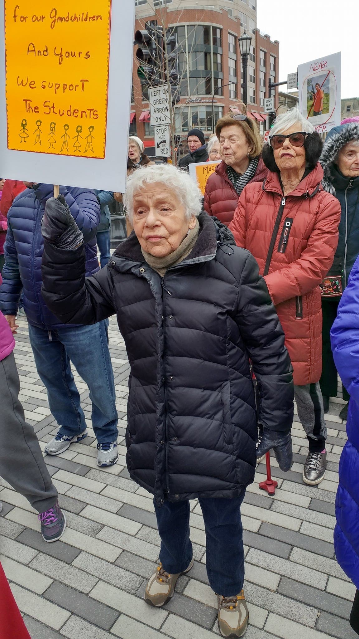 They held signs with messages like, "I may be old but I stand with the young," "For our grandchildren and yours, we support the students" and, "Honest gun safety legislation will not lead to a slippery slope but to a sensible ascent.”
