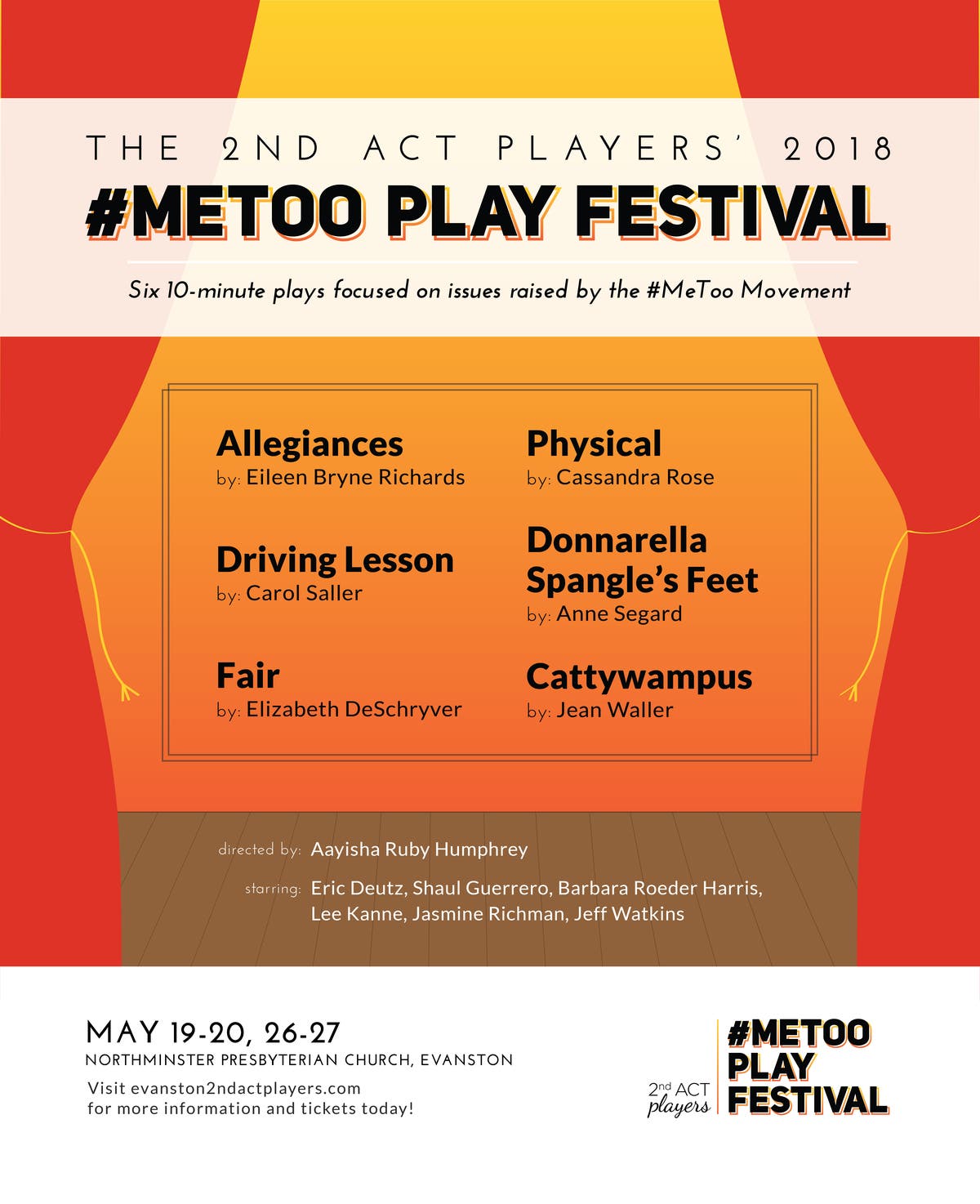 From Evanston 2nd Act Players: Seeking to continue discussions of the issues raised by the #MeToo Movement, the 2nd Act Players will host a #MeToo Play Festival this May in Evanston, featuring six short scripts that address issues raised by the movement. Staged readings of the plays will take place May 19-20 and May 26-27 at the 2nd Act Players theater in Northminster Presbyterian Church in northwest Evanston.