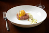 Seared Ahi Tuna - quince puree, soy beurre blanc, rice paper cracker $12/$24
