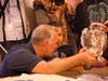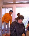 As local photographers jockeyed for the perfect shot, Field Museum scientist Mary Hennen and Shedd Aquarium scientist Matt Gies passed a ladder out the library’s third floor window for the short hike up to the rooftop ledge where the falcons make their home. Wearing bicycle helmets in case the parents attacked, they picked up the baby falcons, put them in a cardboard box and brought them back inside the library for banding and a blood draw.
