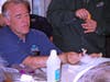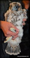 Surrounded by a mass of kids, Hennen and the other scientists pulled the baby falcons out of the box one at a time. They placed a towel over their heads to calm them, then placed band around one leg and drew a vial of blood. The blood, Hennen explained, is taken so that the Chicago Peregrine Program can study their genetics.