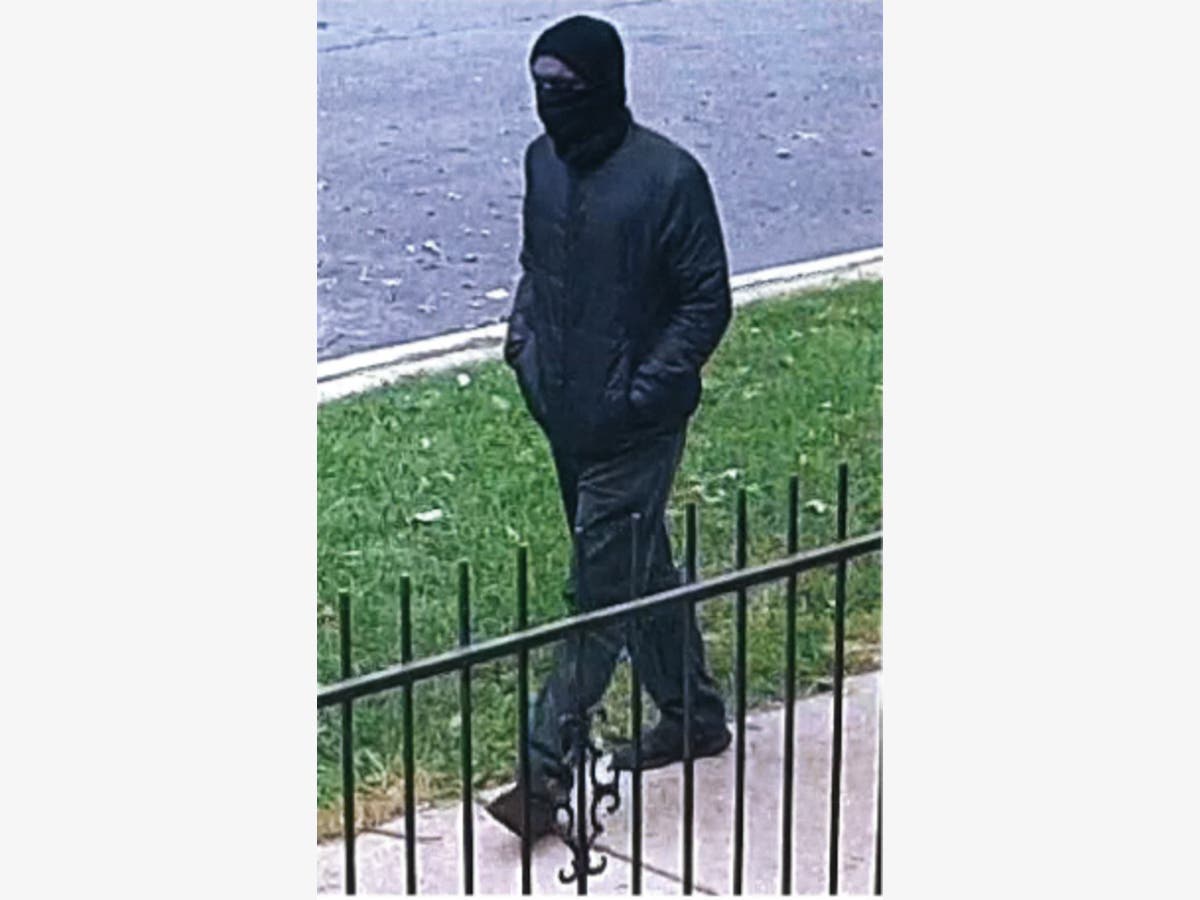 Police have released a surveillance image of the suspect, who is seen wearing all black, with his face covered.