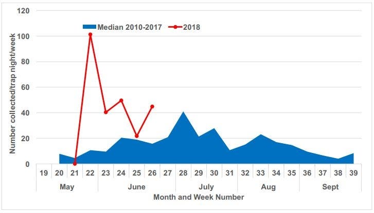 According to the district, the infection rate among mosquitoes – 1.35 per every 1,000 tested – remains above average. The risk of humans becoming infected is low but increasing, and human infections mostly occur during July through September. Human cases often go unreported, as relatively healthy people with West Nile can be asymptomatic, according to public health officials. People with the virus infected can experience fever, nausea and headaches for weeks.