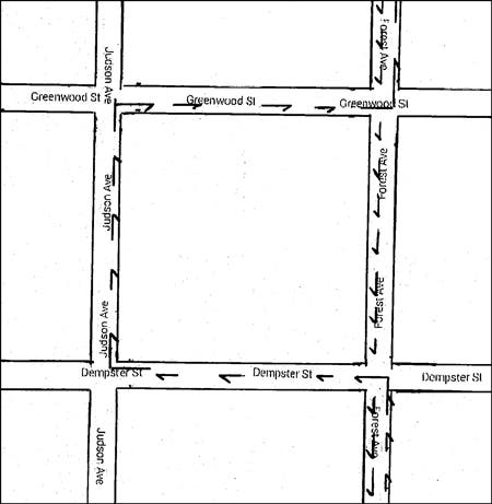 Work will take place from 8:30 a.m. to 3:30 p.m., and will involve excavation and restoration of the street. During this time, northbound traffic on Forest Ave. will be detoured west onto Dempster St., north onto Judson Ave., and east onto Greenwood St. to Forest Ave. Southbound traffic on Forest Ave. will remain open. See map for detour route.