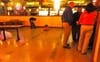 There were eight to ten patrons dining in along the back wall, and another ten customers were sitting on the west side of the dining room waiting to pick up carryout orders.