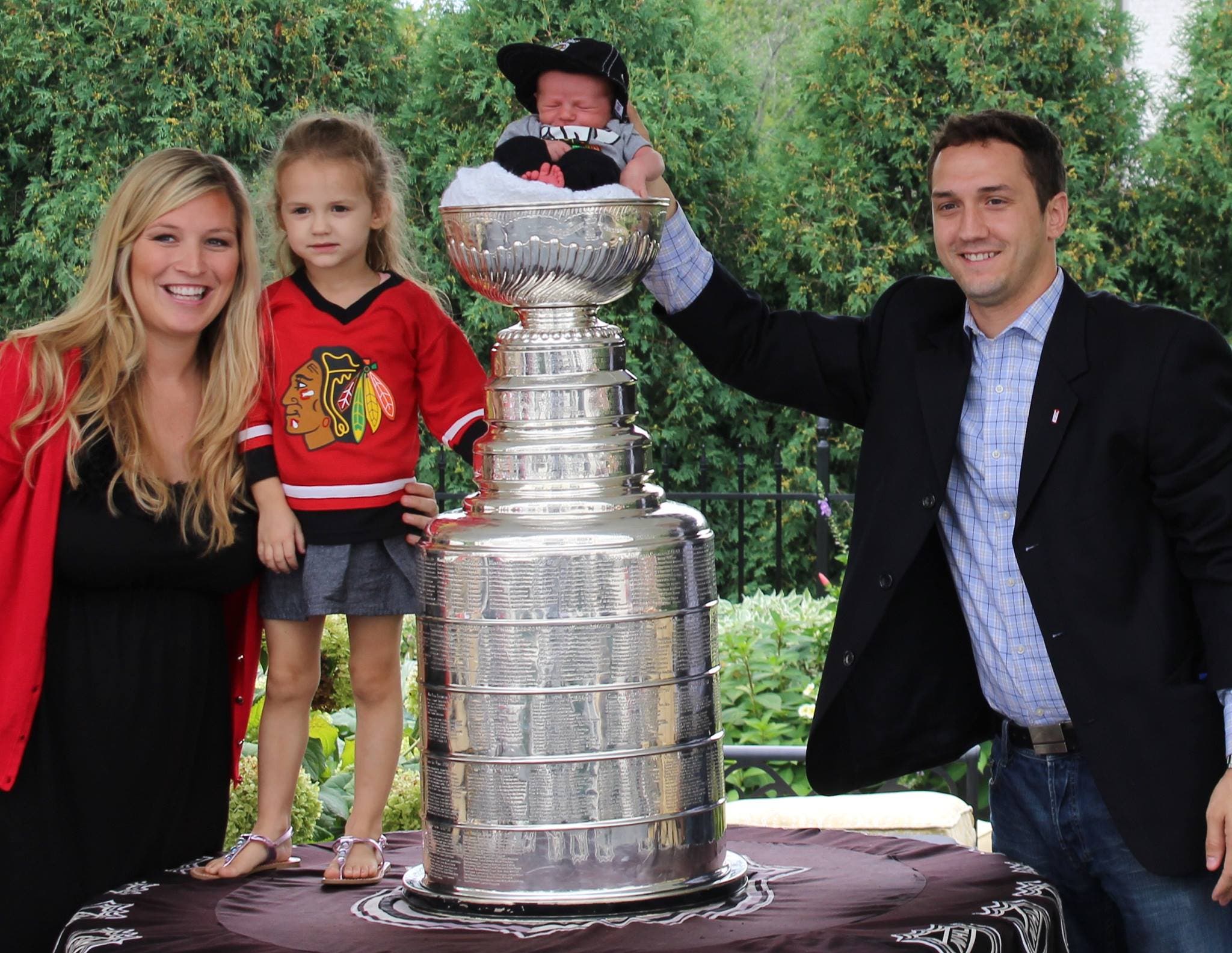 Amoroso’s time with the corporation has included the Blackhawks’ two most recent Stanley Cup championships in 2013 and 2015. The 2013 Cup win came just days after the birth of Amoroso’s oldest son, Michael, and he’ll forever cherish the photograph he has of the young boy inside the Stanley Cup at just a week old.