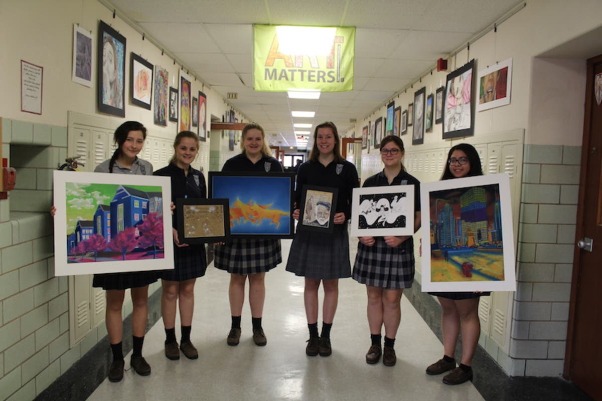CHICAGO, IL -- Six students from Mother McAuley Liberal Arts High School top home top honors in the prestigious Scholastic Art, Midwest Regional Competition. Students Abby Graeber ’20 (Beverly), Rachel Kapusciarz ’18 (Garfield Ridge), Yessica Pineda ’18 (Veteran’s Park), Emily Tonkovich ’18 (Dyer, IN), Charlotte Wagner ’20 (Mount Greenwood) and Elizabeth Ward ’19 (Oak Lawn) won assorted awards for their creative works.