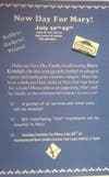 New Day will also be donating a portion of services and retail sales to Kendall. From 1 to 5 p.m. Sunday, July 26, a ‘New Day for Mary’ benefit will be held at Homestead Barr, 9306 Central Ave, Oak Lawn.