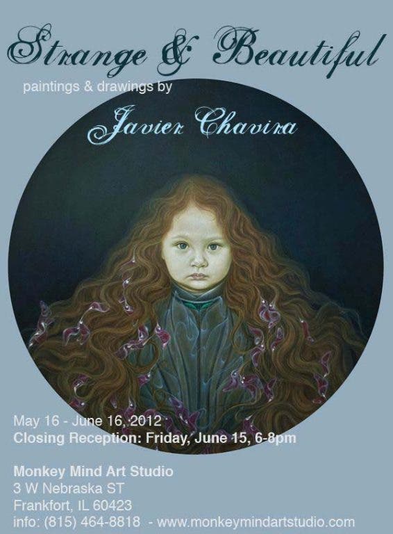 Rising star artist Javier Chavira closes his "Strange and Beautiful" show at Monkey Mind Art Gallery with a public reception on June 15.