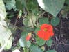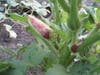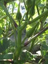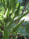But just the other day, I discovered that there really is some okra growing on most of those plants! I Googled to see when to pick it and was told that the pods shouldn't be allowed to get too big or they'll be woody, so I picked some, even though they seemed small to me. It also said to inspect daily because it only takes four days from flower stage to prime time for picking. I did get to see some flowers, but sadly not in bloom. (See pictures).
