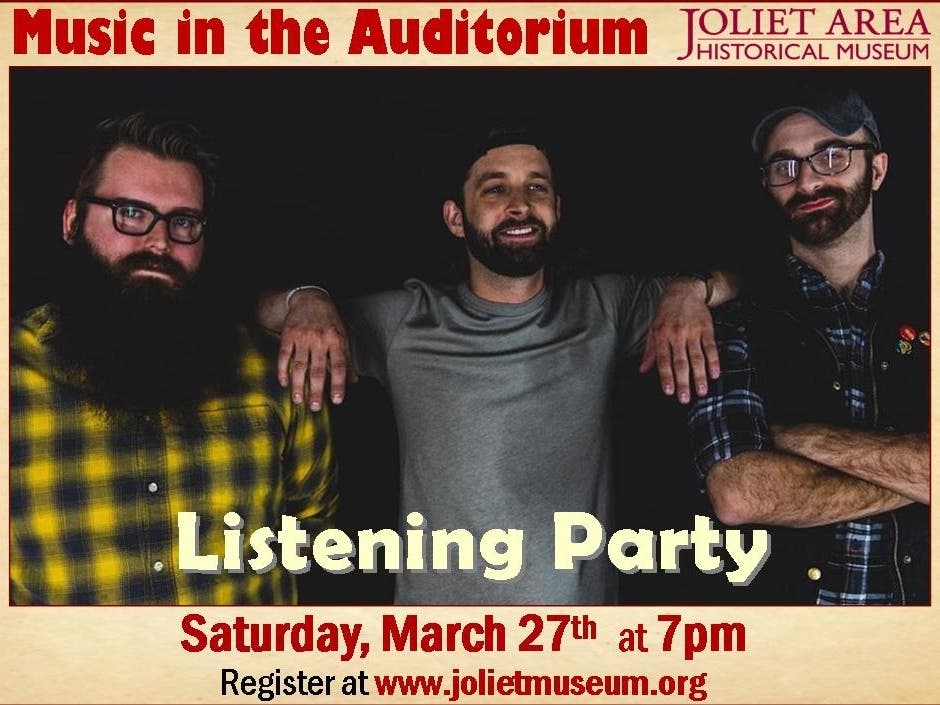 Join us at the Joliet Area Historical Museum in our Indoor Auditorium Theater for a special concert featuring LISTENING PARTY band, and a catered meal of Pulled Pork Sandwich, Pasta Salad & Cookies included with ticket price of $20. Saturday, March 27th at 7pm!