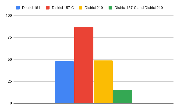The majority of responses came from District 157-C parents, followed by fairly even responses from District 210 and District 161.