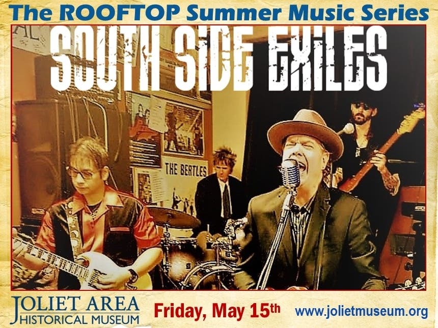 The South Side Exiles play on the Joliet Museum's Outdoor Rooftop Music Series Friday, May 15th at 7pm (doors open at 6:15pm)!