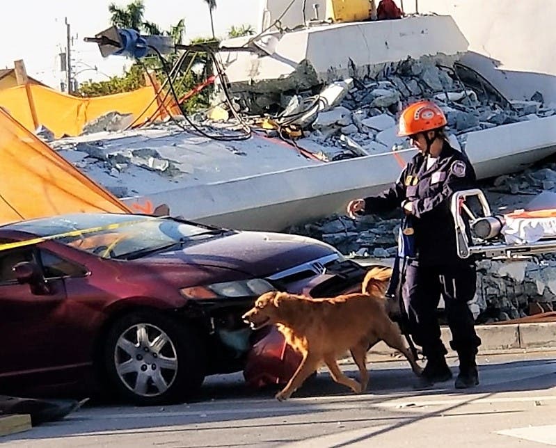 More than 100 technical rescue specialists from Miami-Dade Fire Rescue and rescue dogs were on the scene looking for "viable patients," according to first responders.