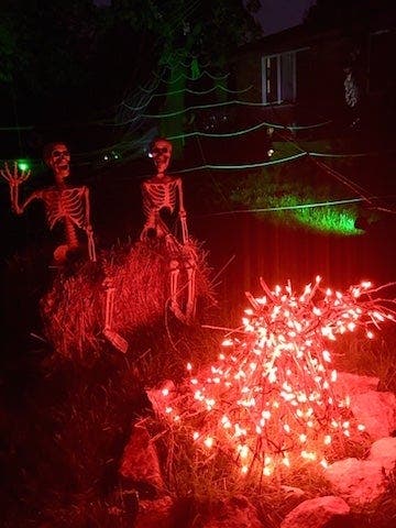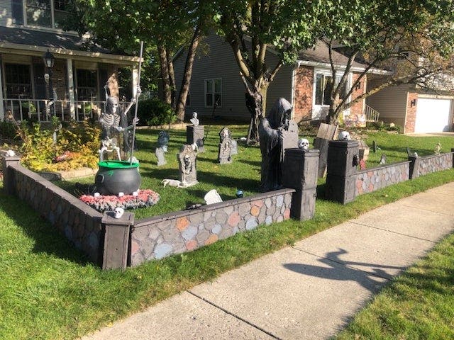 20936 W McGILVRAY DRIVE, LOCKPORT — Arachnophobiacs can conquer their fears and/or avoid the giant spider web and spiders altogether. Beata VanderVeen’s eclectic haunt features aliens, haunted graveyard and the Bones family, who've waited a long time for trick or treaters. She tries to change it up every year. Should be ready by Oct. 11.