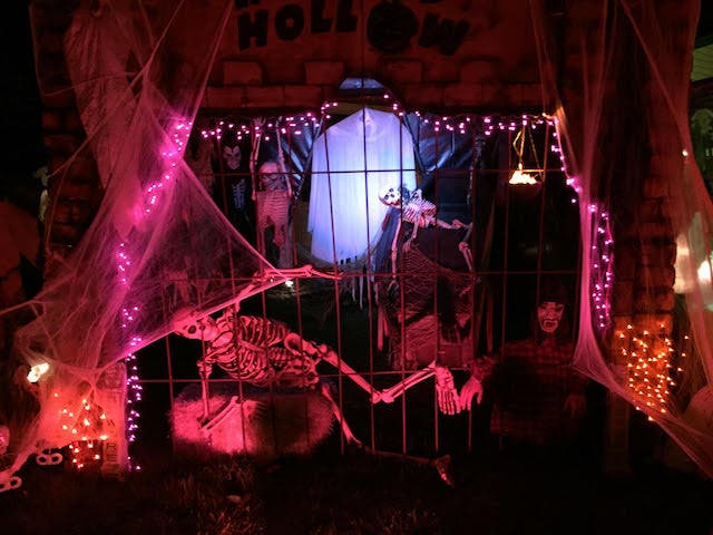 ADDED! 12449 WALDEN ROAD, HOMER GLEN — Tracey Anzar tells Patch that her husband, Dean Lamb, had been preparing and building different props for months. This yard tells a story. Fog machines are up during the weekends. Donations to the local animal shelter are appreciated.
