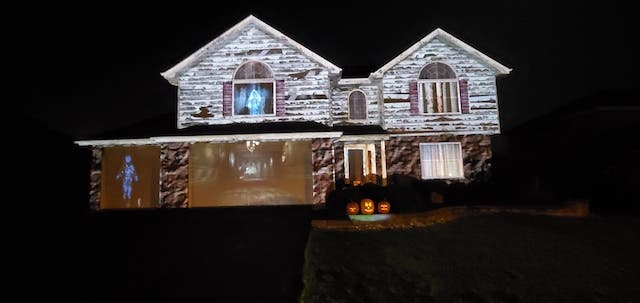 ADDED! 24361 SHAWNEE LANE, MANHATTAN -- Michael Hesser’s yard haunt is a technological feat, done entirely with computers. Michael starts programming and editing weeks in advance. Currently he has two “scenes” running, with more to be added in the days leading up to Halloween to keep things interesting.