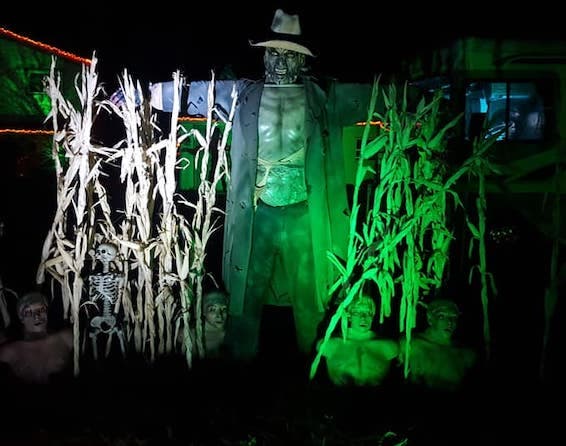 EVIL ON AVERS, 18808 AVERS AVE., FLOSSMOOR — Evil on Avers is a themed yard display entitled "Grinning Gourd Farm & Garden". There are animated and static characters in scenes including a hayride of creepy children, pumpkin monsters, a corn monster tending the farm stand, giant praying mantises who have found their prey in the cornfield, garden gnomes carrying a coffin and more. "I have been 'haunting' my home for about 20 years. I do make quite a few of my own props. I am a member of Chicago Haunt Builders, a great group of people who get together to build props and share our love for Halloween," Cindy Ver Haar says. Opening OCT. 18. Hours are dusk to 10 p.m. through Oct. 31.