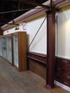 The giant steel arm that turned the trolleys around and repositioned them over the pits in the floor so maintenance workers could get underneath was still functional. The Wilsons had to cut away most of the arm when creating the upstairs retail space, but they left a exposed segment connected to the vertical pole, a permanent reminder of the building’s origins. They also chose to leave the slatted wood ceiling uncovered, deciding it looked just fine after a major power washing.