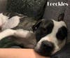 Hello, my name is Freckles, I’m a female, 2.5 year old Pit Bull. I weigh approximately 65lbs. I sleep through the night in a crate at night and use bells to go outside when I need to go to the bathroom.