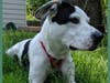 Dino is crate and house trained. He’s about 2 years old and neutered. Dino gets along with other dogs with proper introduction. He can climb fences so a tie out needs to be used in the yard. Dino would do best with someone who can walk or run with him at least once a day. Dino would like a cat free home. He’s an amazing dog who can’t wait to find his forever home!