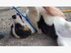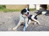 Durbin, male, 1-2 yrs. Short Coat Collie mix. A beautiful and sweet, sweet boy...walks a few paces and then flops over for you to give him a belly rub. Durbin has an old leg injury that we would like to have looked at by our vet and treat if needed.