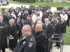Officers from each of Kane County’s departments lit a candle at the head of the church, and when the service ended, they filed outside for a 21-gun salute to the fallen. As the shots rang out, row upon row of police officers stood at attention and saluted.