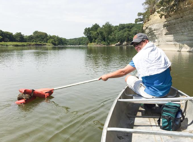 Jones and Brejcha were enjoying an especially scenic portion of the trip, which runs from Illinois 52 to Wedron, where sandstone bluffs are bleached white and make you “feel like you are not even in Illinois” when they spotted something thrashing in the water, Jones said.