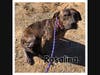 He is a beautiful blue/brindle mix. He had lived on a chain (probably all his life). He was quite nervous the first few days he was in the shelter, but seems to have settled in. He HAS been around cats. The shelter's impression of him is he's just a big baby. He is stunningly beautiful. (And he kind of lays like a cat in his picture!).