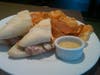 - pressed pork sandwich – slow roasted pulled pork, ham, jack cheese, mojito sauce and garlic aioli on a griddle-pressed Italian loaf...9.99