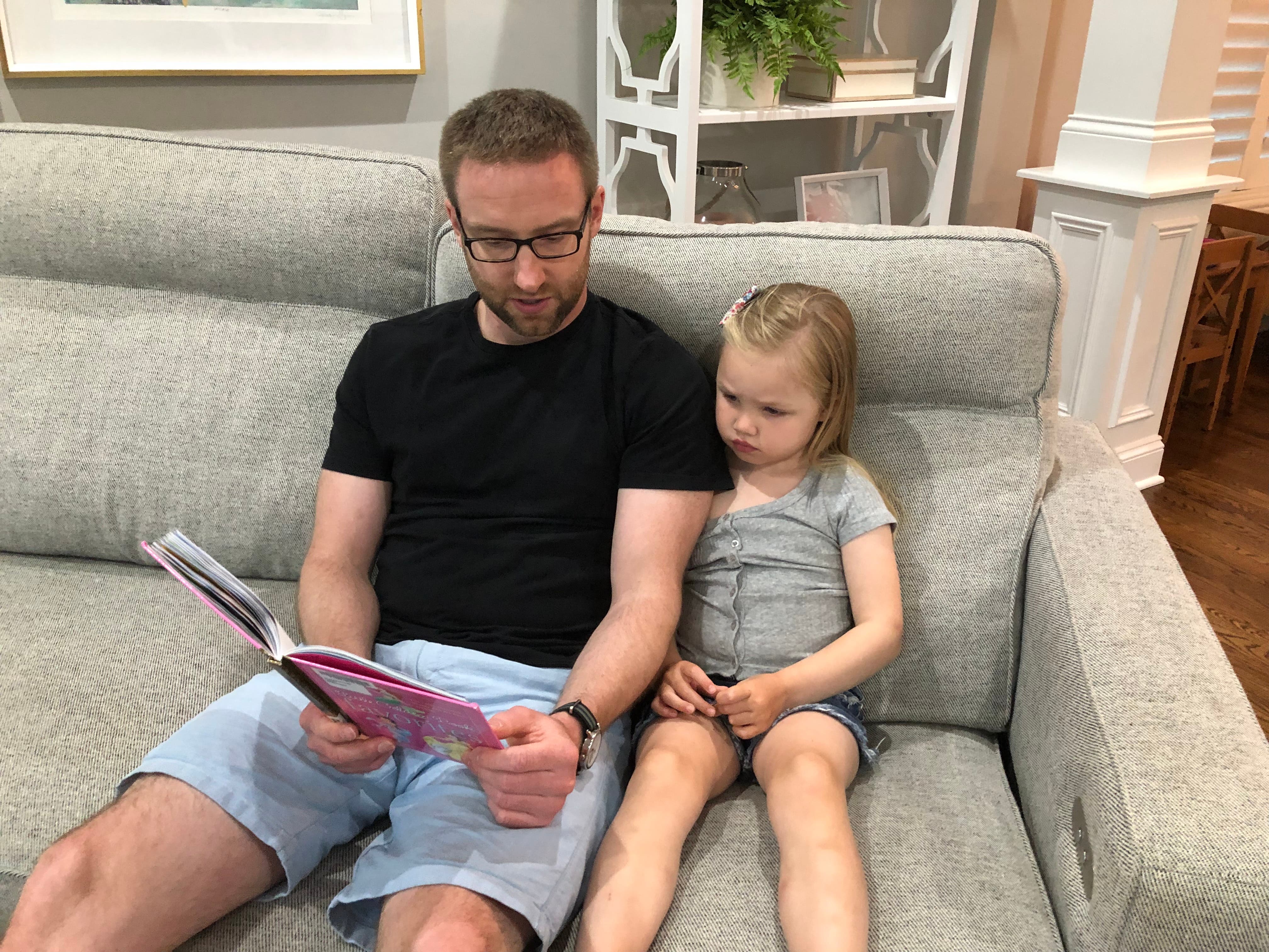 She walked up to her dad, Mark, with her new book in tow and asked, "Dad, can we read this book?"