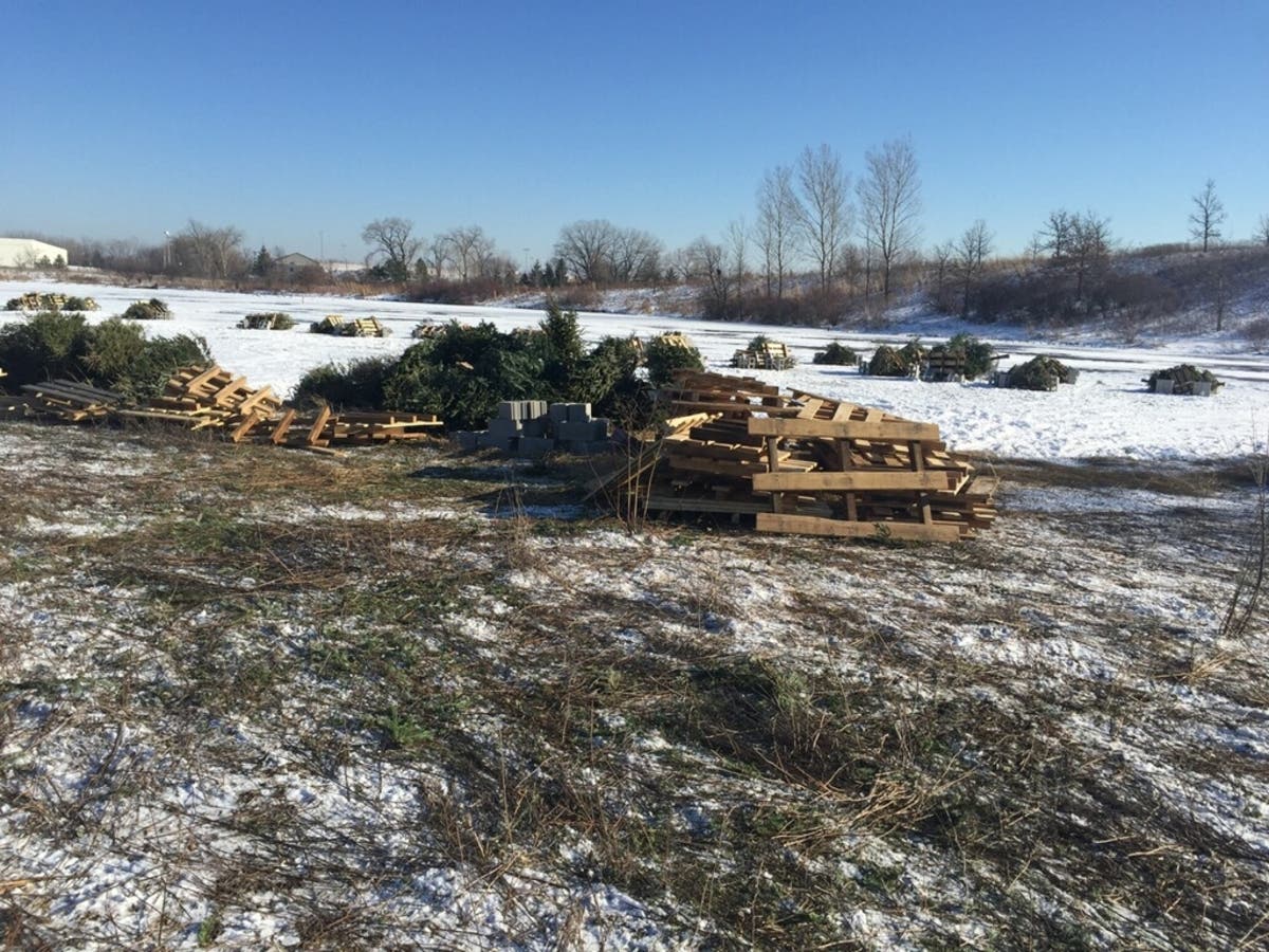 Since Christmas, more than 150 trees have been collected by the village and at multiple drop off sites. The trees were bundled together and put onto large wooden pallets, according to Robyn Flakne, natural resources manager in the village's public works department.