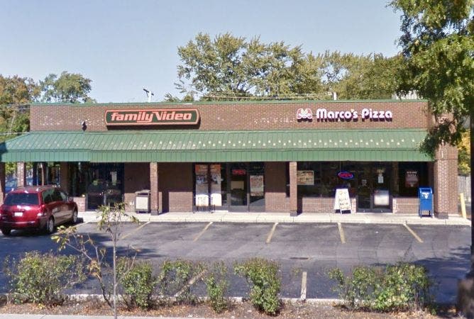 Top photo: Street View of Glenview location of Family Video, Marco's Pizza