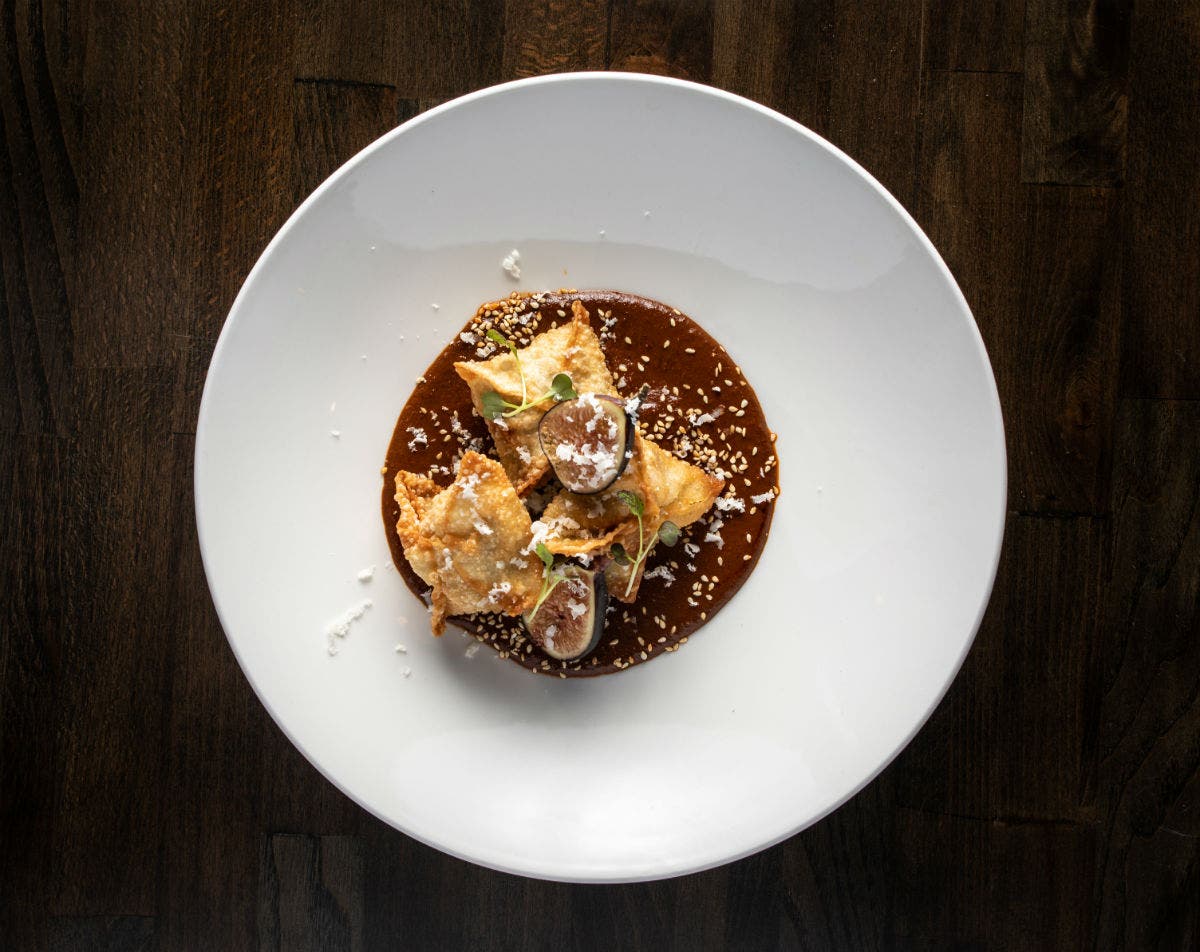 In addition to the choice of seven types of tacos, the menu at opening included familiar items like a steak burrito and carne asada, as well as crispy duck buenolos with oaxacan mole and figs, smoked octopus and esquites, roasted corn with a paresan creme gratin. Its house specialties include a Lamb barbacoa wrapped in banana leaf and a grilled chicken with mole and chile-infused apple.