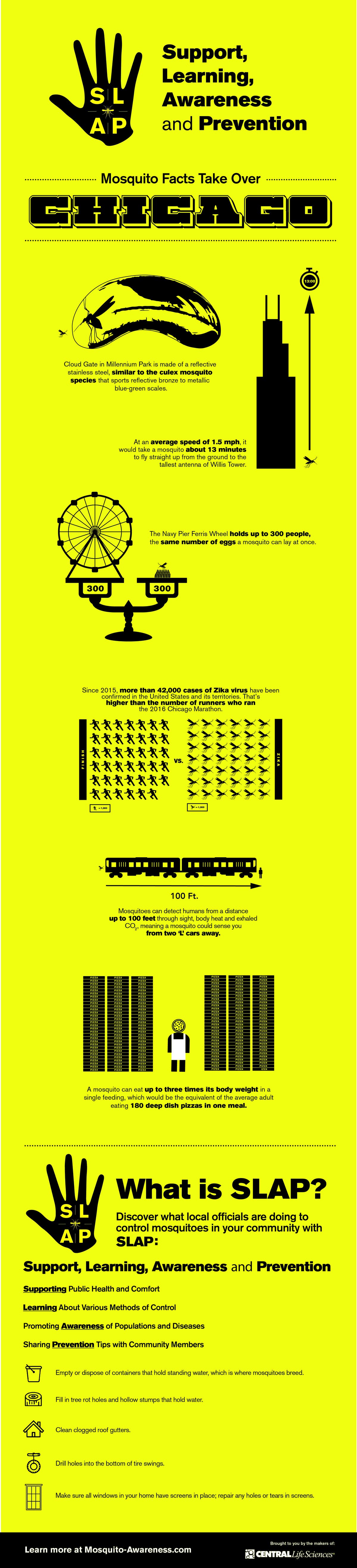 The SLAP (which stands for "support", "learning", "awareness" and "prevention") mosquito awareness campaign will be travelling around Chicagoland with a brightly colored mobile billboard to coincide with National Mosquito Control Awareness Week, organizers said.