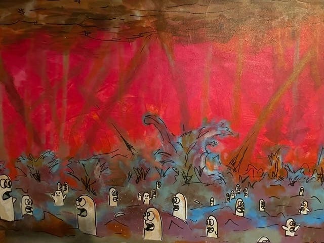 Jack Benvenuti studied art at Cal State Northridge. His works create a commentary on innocence and experience and often have a satirical view of culture. He is part of the radical contemporary urban movement calling his style, “ironic graffiti.”