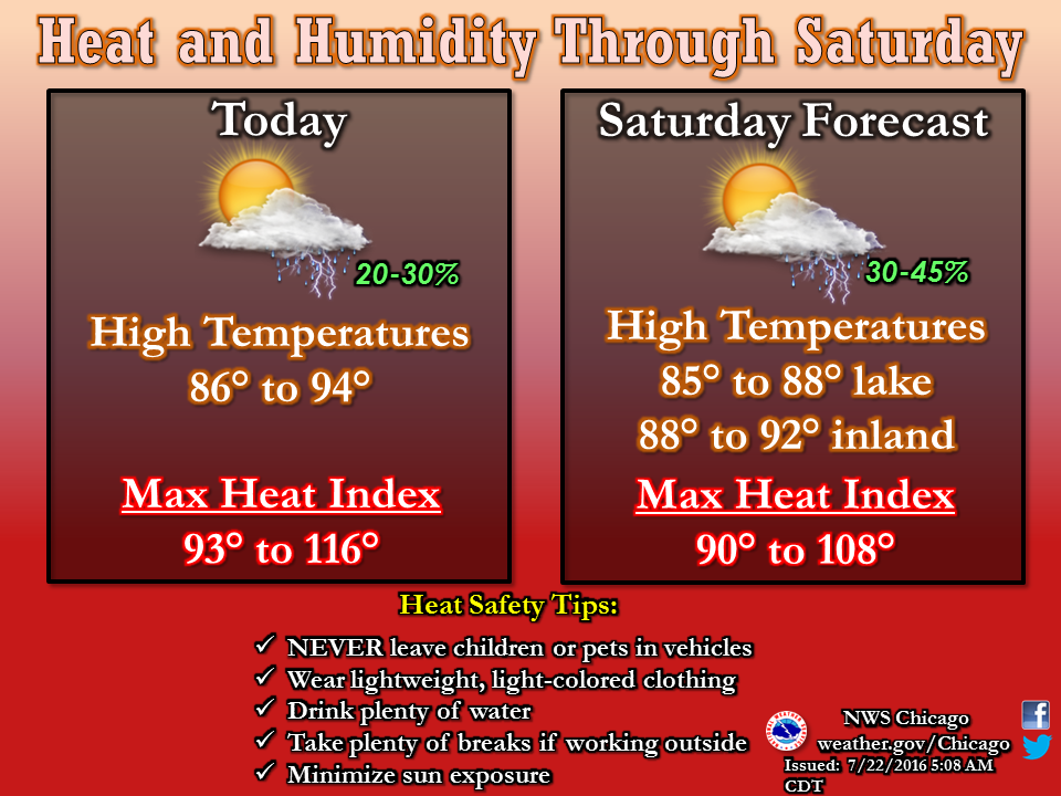 In addition to the heat, isolated thunderstorms could enter the Chicago area Friday afternoon. Here is more from the National Weather Service: