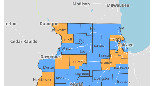 This past week, Pritzker announced new restrictions on the Metro East region that suspend indoor service at bars and restaurants and limit gatherings to a maximum of 25 people because their positivity rates have continued to exceed 8 percent. The new measures bring the area, Region 4 in the governor's coronavirus resurgence mitigation plan, into line with the rules imposed on Will and Kankakee counties, or Region 7, last week.