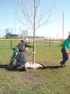 Nehila and members of the Parks Maintenance Department moved the tree into its final resting spot and invited members of the club to grab a shovel and dig in.