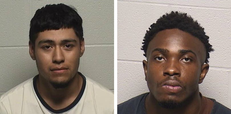 Damian Toledo Jr., 19, of Highwood, and Shawn Sawko, 19, of North Chicago, were arrested around 7:30 p.m. and charged with robbery and aggravated battery, according to police.